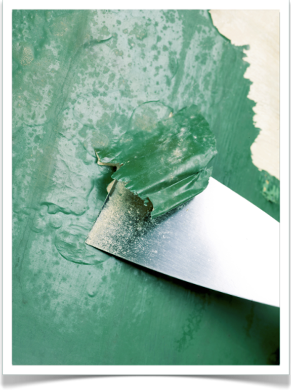 Tras mojarla notarás que es muy fácil retirarla con la ayuda de una espátula. Recuerda que provocar algún desperfecto en la pared a la hora de retirar esta pintura es normal. Tan sólo repara la pared con Aguaplast, tal y como vimos en este artículo.