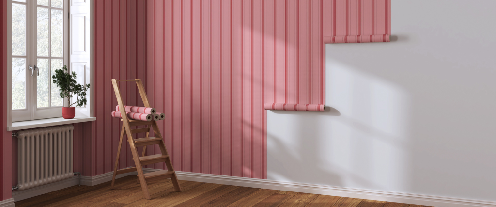 Aplicaremos el mismo método (medir, sumar, encolar, buscar el punto y pegar) una y otra vez, hasta que tengamos toda la pared cubierta con el papel. Por último, cuando hayamos terminado y las cola esté bastante seca, cortaremos los sobrantes de arriba y abajo con la ayuda de una regla y un cúter y aplicaremos algo más de cola, si hiciera falta, a fin de que los bordes queden bien pegados.