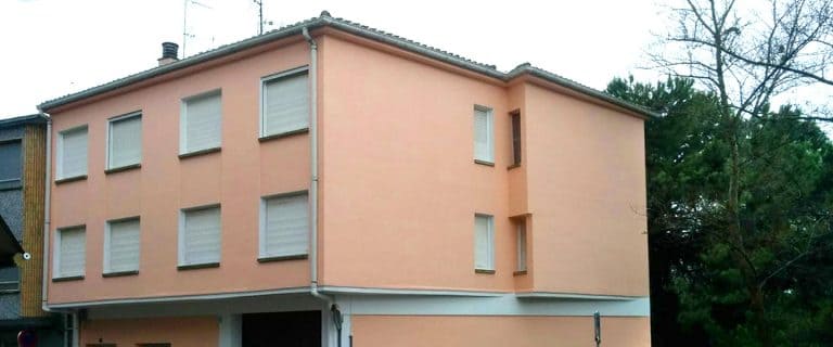 El último paso consistió en el pintado de toda la fachada con pintura Beta Re, de Beissier, en distintos colores. Como la fachada había sido imprimada previamente, dos manos fueron suficientes.